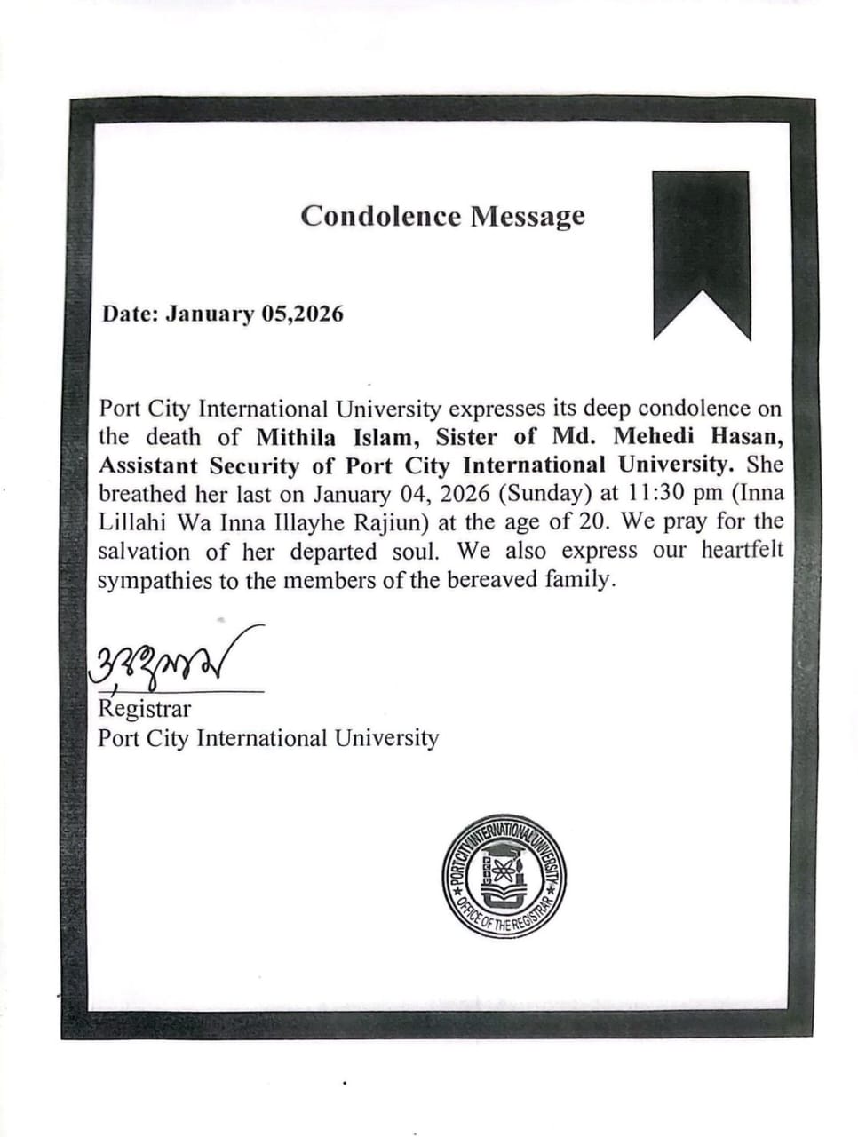 | 05-01-2026 | Condolence Message | Office of the Registrar | Download | |