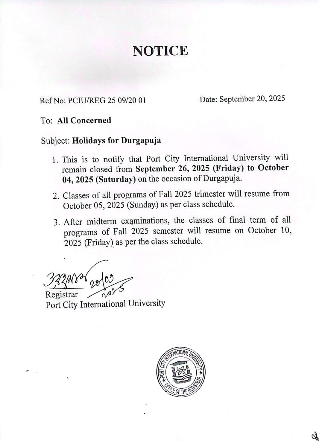 13-09-2025 | Starting Classes of Fall 2025 Trimester | Office of the Registrar | Download | |