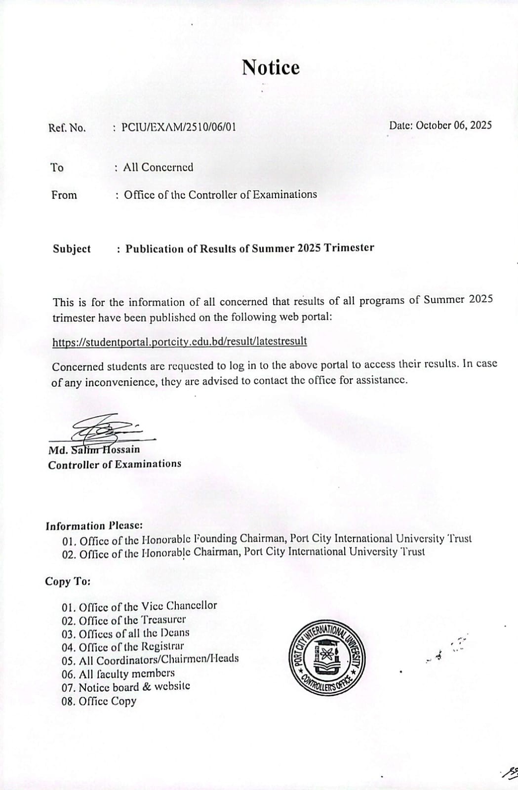 06-10-2025 | Publication of Results of Summer 2025 Trimester | Office of the Controller of Examinations | Download | |