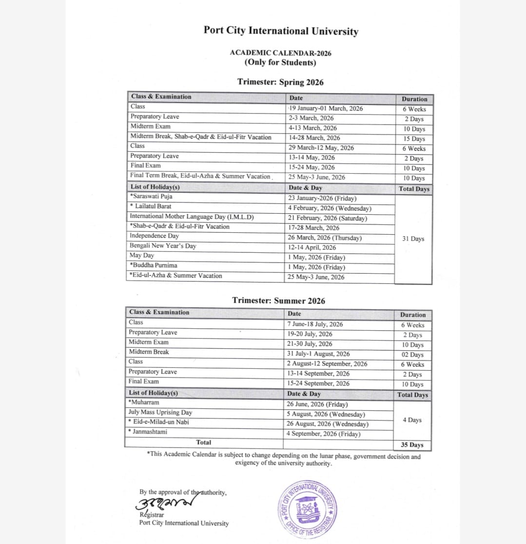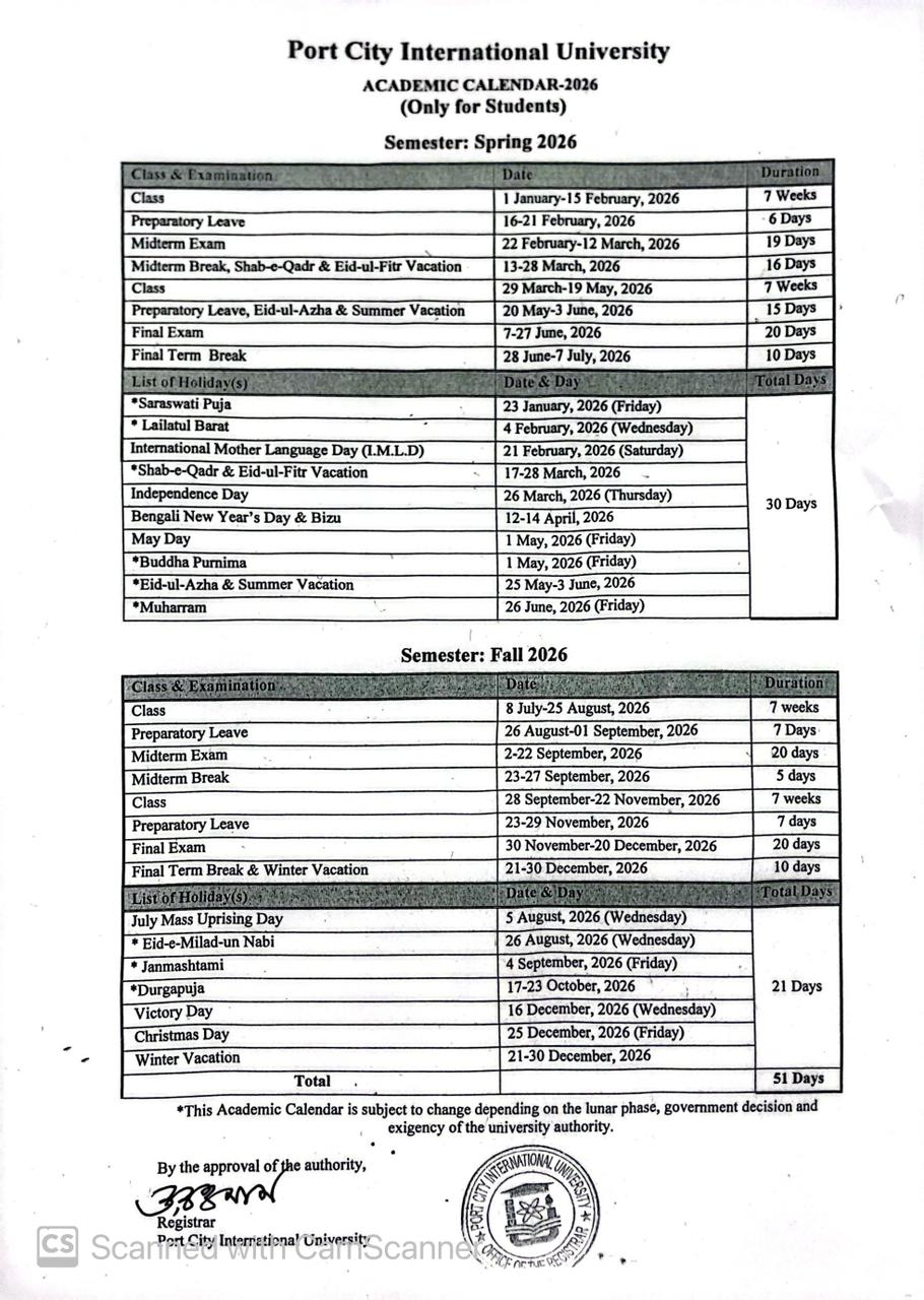 This Academic Calendar is subject to change depending on the lunar phase, government decision and exigency of university authority