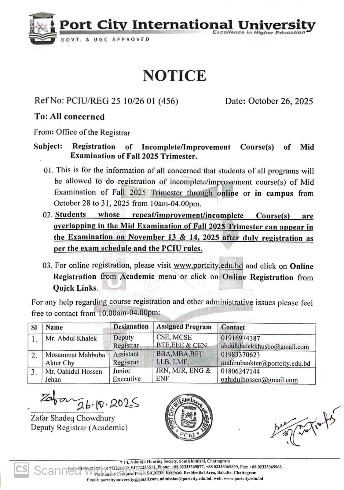 | 26-10-2025 | Registration of Incomplete/Improvement Course(s) of Midterm Examination of Fall 2025 Trimester | Office of the Registrar | Download | |