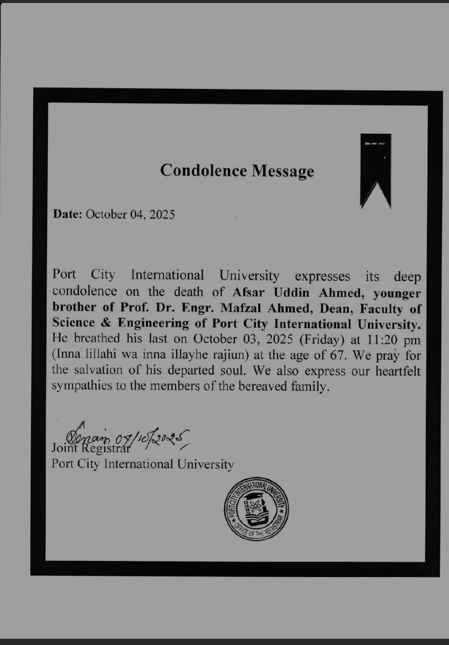 Condolence Message from Hon'ble Chairman (BoT) |