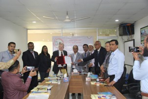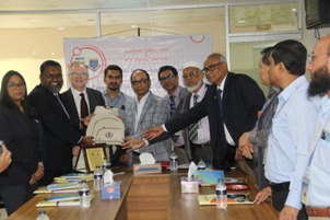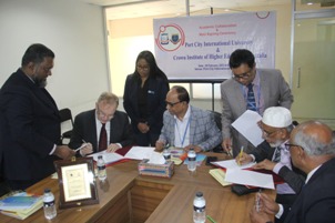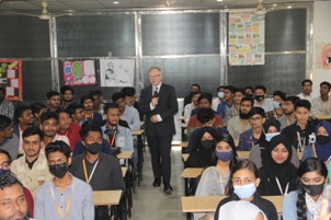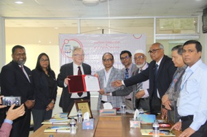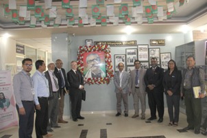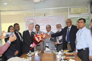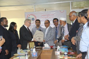 ||MOU signing ceremony between PCIU & CIHE, Australia|| ||Prof. Grant Jones is interacting with the students|| ||CIHE team in front of Bangabandhu Corner||